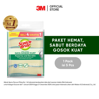 3M™ Scotch-Brite® Tough Clean Anti-Bacteria Sabut Spons, 1 pak/ 5 pcs, Untuk membersihkan peralatan dapur