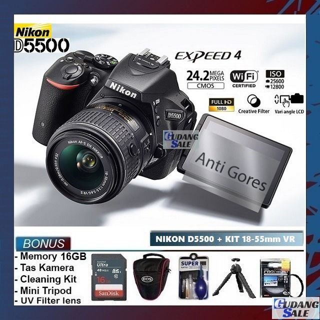 Judul : [NEW] KAMERA NIKON D5500 + LENSA KIT 18-55MM VR II Wi-Fi - GARANSI 1 TAHUN - CAMERA DSLR VLOG d5300 d3500 d5600 200d